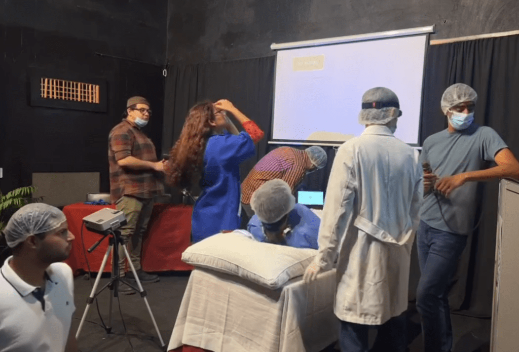En esta simulación/reconstrucción de hechos, participaron los estudiantes de 13vo trimestre de Derecho, quienes elaboraron la escenografía y el diálogo; cabe mencionar que la actividad se centró en llevar la secuencia real que obra en expediente del caso penal.